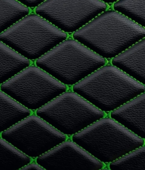 Ткань  автомобильная. Экокожа стеганная . Ромб. (черный- зеленая нитка)