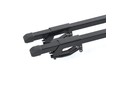 Основой зажима этого багажника на рейлинги является принцип работы тисков. Болт на кронштейне стягивает между собой лепестки крепления, которые в свою очередь прочно и плотно зажимают рейлинг автомобиля.